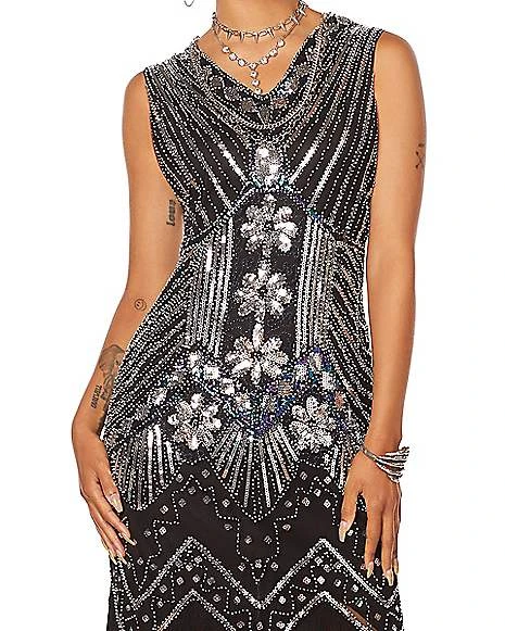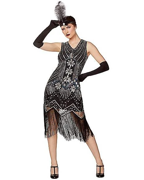 Let’s have a ball, toots! Dance like it’s the prohibition era in our beautiful black adult beaded flapper dress. Dance to some jazz this Halloween and celebrate like it’s the ’20s! This beaded dress features fringe detail that will have you coined as best dressed!