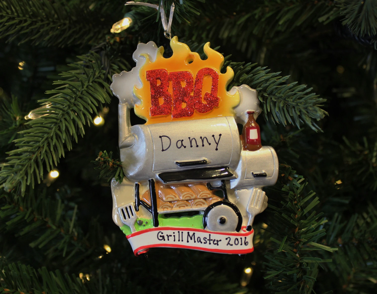 Fire up the grill! Get the sauces and food ready, here comes the BBQ! Add this fun personalized Christmas ornament to your tree to show off BBQ mastery. This terrific BBQ smoker ornament would also make a great gift for the grill master on your list. Made of resin. Dimensions 3.5″ x 4.75″. Item # OR1382.