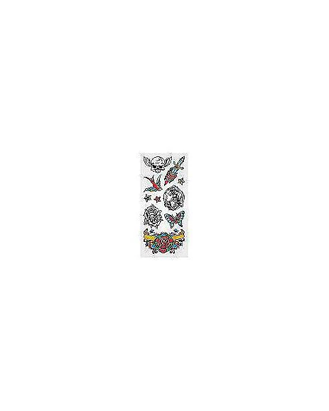 Show off your edgy side with these temporary butterfly and skull tattoos! These realistic and vibrant temporary tattoos feature roses, skulls, exotic birds, butterflies, and more.