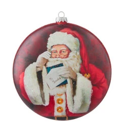 Raz 6″ Santa Reading Letter Disc Glass Christmas Ornament 4252887