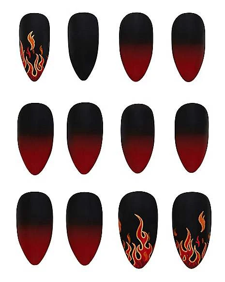 The devil’s in the details! Perfect your Halloween look with these black and red Devil Flame Press on Nails. Choose the nail sizes and patterns that fit you best for a wonderfully wicked manicure in minutes!