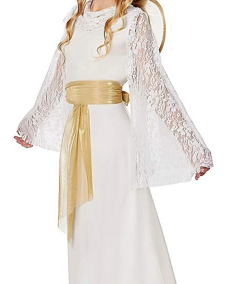 You’ll look positively heavenly in this lovely lace angel costume! The angelic look features flowing lace sleeves, shimmering waist sash and a halo headband for a costume that’s sure to have everyone singing your praises! It’s a miracle!