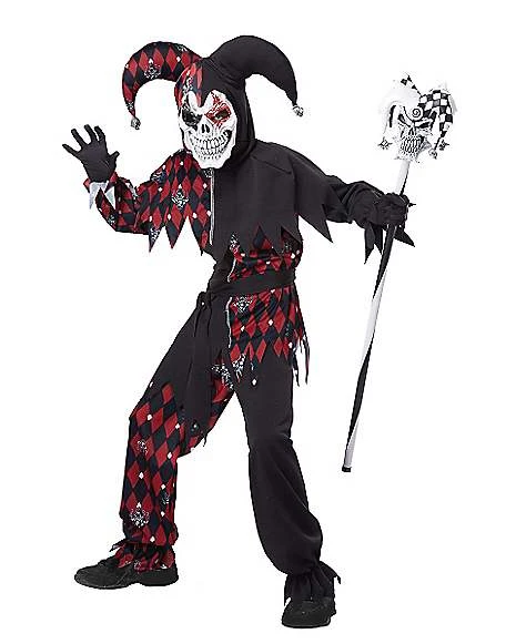 You’ll have the last laugh in this terrifying jester costume! This red and black, harlequin-design outfit consists of a shirt, matching pants, waist sash, hood with attached collar and creepy jester mask. Looks like the joke is on you!