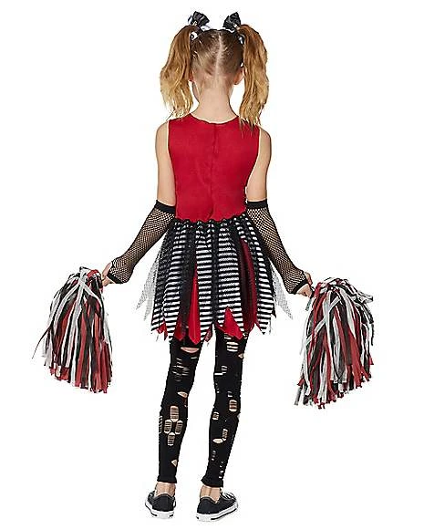 If your little one wants to cheer through the street on Halloween night, we’ve got the perfect costume! We’re dead serious. This zombie cheerleader costume will instantly add a dark touch to a cheery costume! The shark bite hemline features three different patterns, giving this costume a three-dimensional look. The number 13 decal on the front will let everyone see the spooky side of your little one. Add the included hair bows, arm warmers, pom poms and footless tights for an undead look that is unlike the rest!