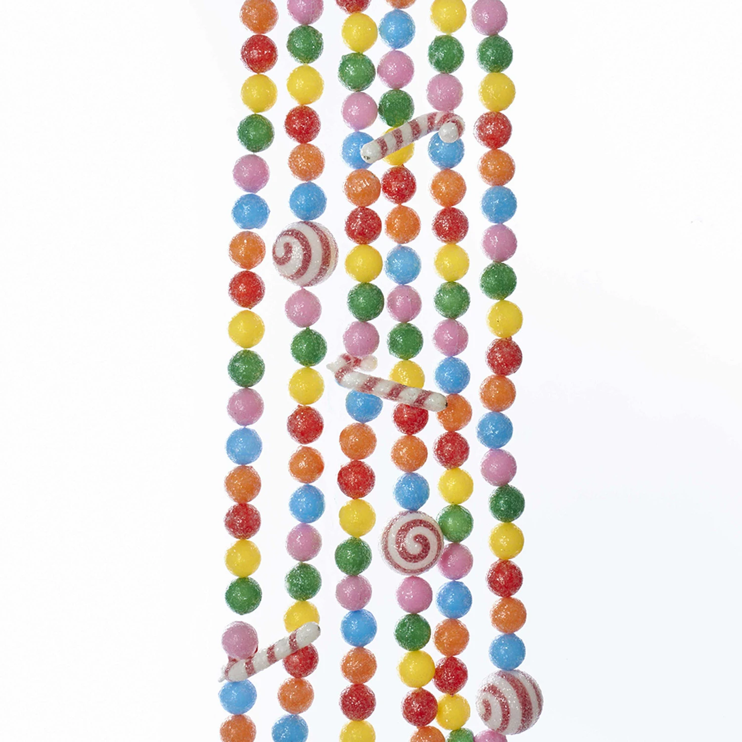 Turn your Christmas tree into candy-topia with this vibrant candy garland! With rainbow gumballs, tiny candy canes, and peppermints it’s sure to add just the right amount of sweetness to your tree! Each candy is lightly coated in fine iridescent glitter! You could add this to a greenery garland, or even a wreath! Fill an apothecary jar with the garland and place on the table or mantle for a fun look! Made of plastic. Dimensions: 6′ long. Item #: H2047