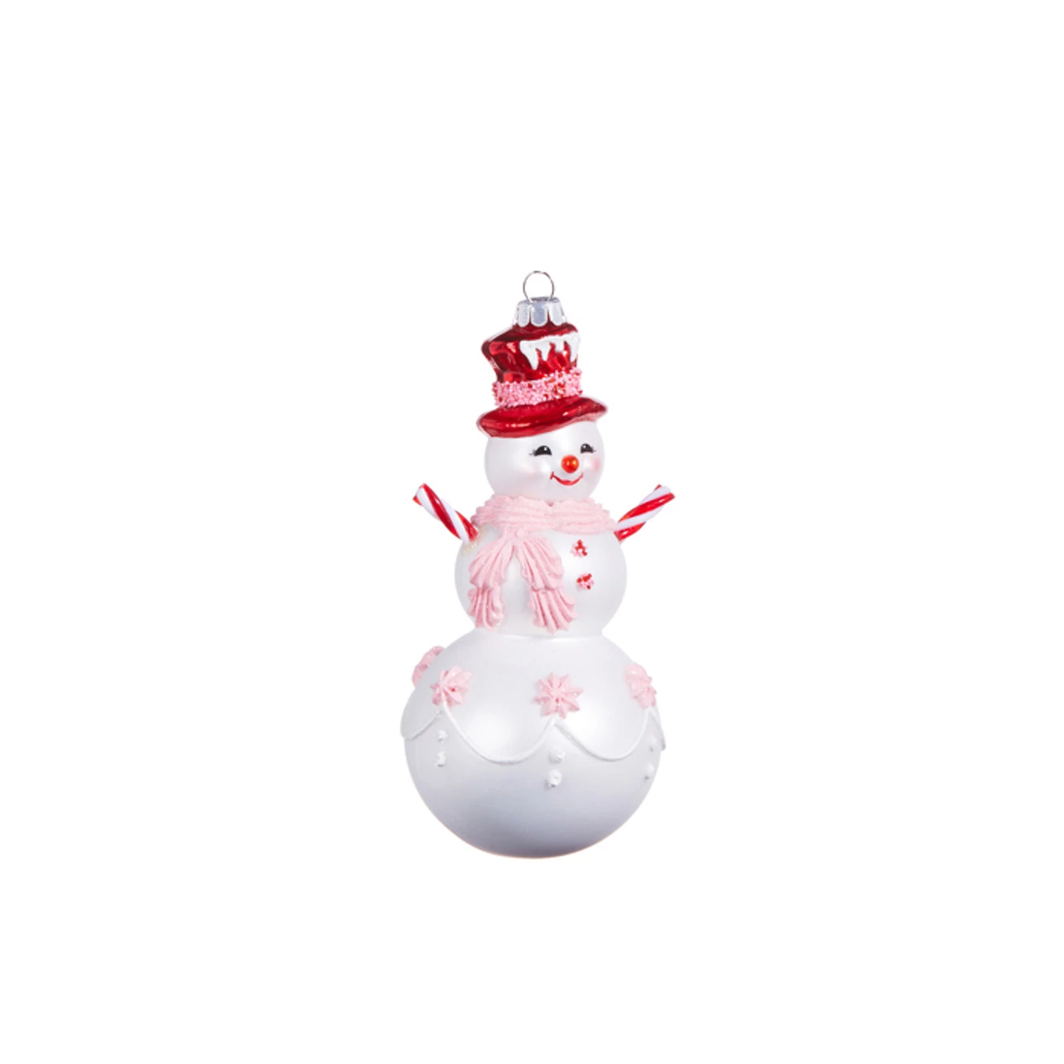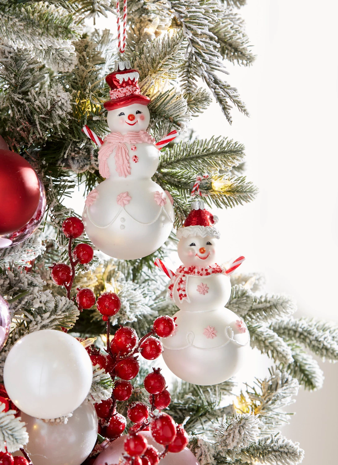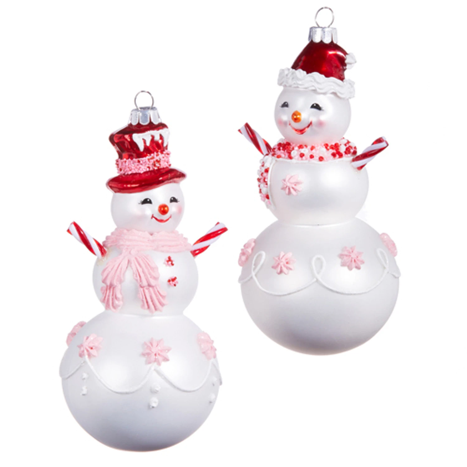 These sweet little snowmen have blushing cheeks and a tiny carrot nose decorated with pink and white icing and re and pink sprinkles! Each one wears a bright red hat and have peppermint candy arms! Each sold individually OR as a set of 2. Made by Raz Imports. Made of glass. Dimensions: 3.5″L X 3″W X 6.25″H. Item #: 4352876