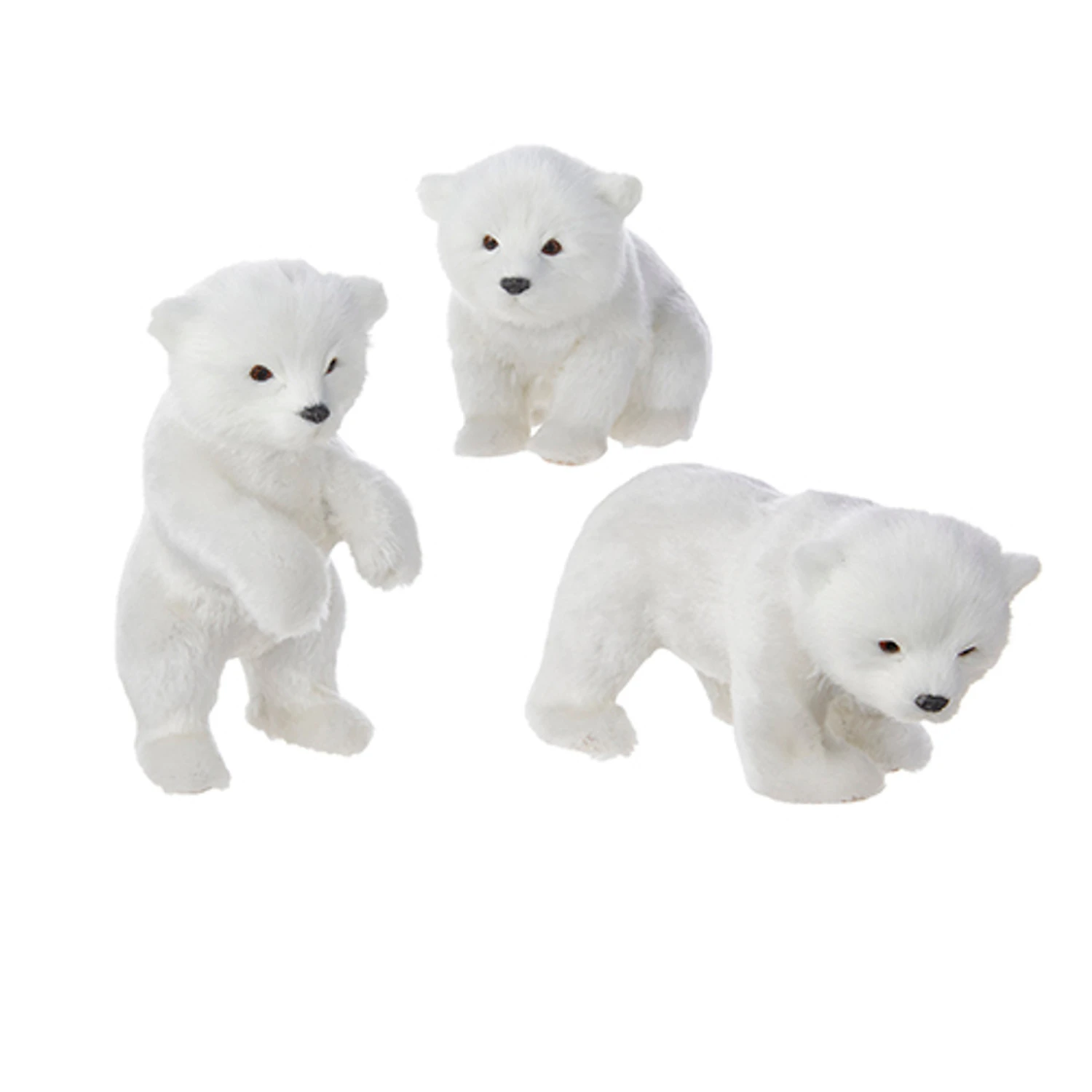 These cute little polar bears are sure to be a hit this holiday season! Each one is covered in white fur and has dark eyes in varying positions! Choose standing, sitting, or walking! Each sold individually. Made by Raz Imports. Made of polyester. Dimensions: 6.25″. Item #: 4250102