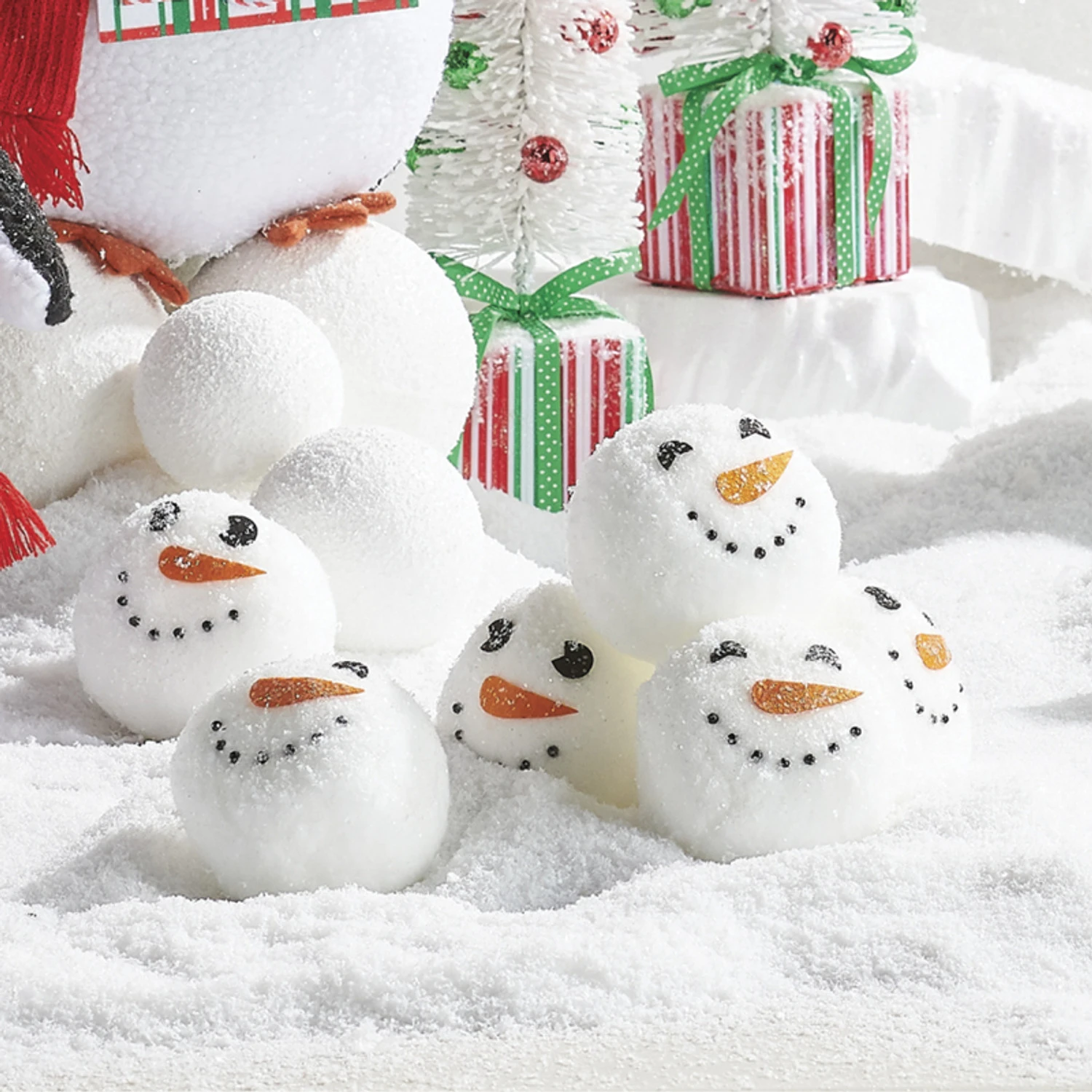 These adorable snowballs features a fluffy ball with a cute as can be snowman face! You can place these on a table, along your mantle, in a glass apothecary jar, or in your Christmas tree! Sold as a box of 6. Made by Raz Imports. Made of polyester. Dimensions: each snowball is 3.5″. Item #: 4216161
