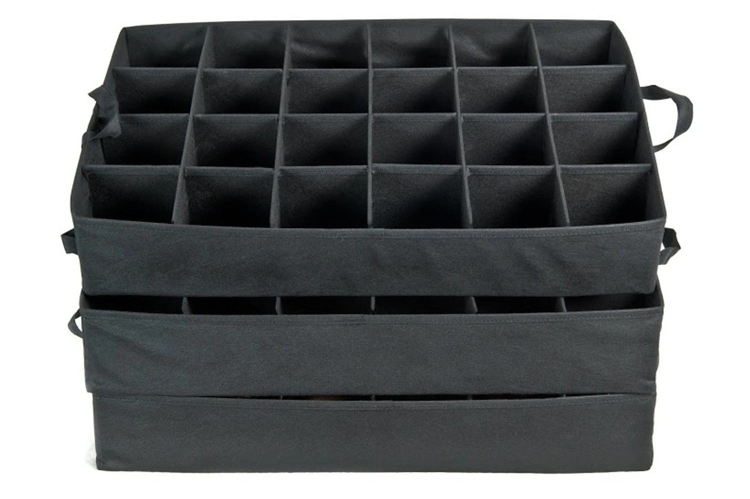 - 3 lightweight, removable storage trays with 24 storage compartments each.